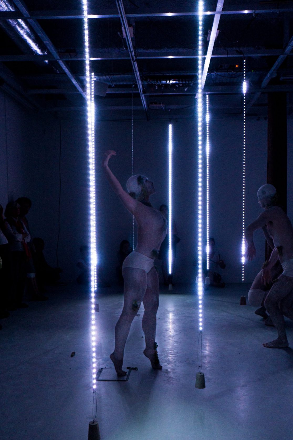 Témoignage Futur est aussi une exposition d’art corporel et génératif au cœur de laquelle chaque corps est initié à l’expérience.